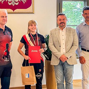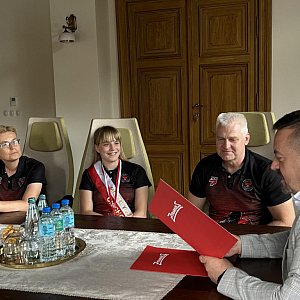 Dziś prezydent Lucjan Krzysztof Chrzanowski w swoim gabinecie złożył gratulacje zarówno zawodniczce, jak i jej trenerowi za to wspaniałe osiągnięcie. Do gratulacji dołączył się również prezes PGK Michał Klonowski.