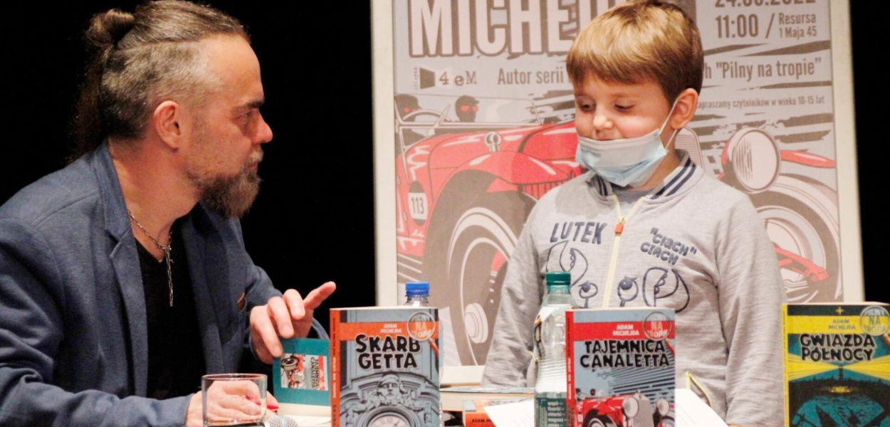 Niemal 100 uczniów żyrardowskich szkół wzięło udział w spotkaniu autorskim z Adamem Michejdą, autorem serii trzech książek przygodowo-historycznych "Pilny na tropie". Rozmowę z autorem książek przeprowadziła w Resursa Klaudia Appel.??????