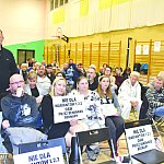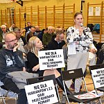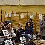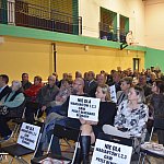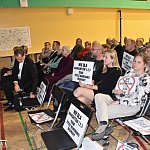 Spotkanie w sprawie przebiegu OAW przez teren Gminy Radziejowice, atmosfera tego spotkania była spokojna, choć wielu uczestników trzymało w rękach duże kartki z napisem: „Nie dla wariantów 1, 2, 3 Obwodnicy Aglomeracji Warszawskiej…”