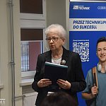 Gospodarzem uroczystości była dyrektor szkoły Barbara Gruchal, która podkreśliła, że współpraca z firmami branżowymi i obejmowanie szkół patronatami zawodowymi ma ogromne znaczenie w procesie kształcenia technicznego. – Tego typu projekty pozwalają bardzo dobrze przygotować uczniów do wejścia na rynek pracy. To nie tylko doskonała lekcja praktyki, lecz także otwartości na wyzwania współczesnego świata – powiedziała dyrektor Gruchal. W wydarzeniu uczestniczyli przedstawiciele firmy Corning: Mariusz Bielawski – dyrektor zakładu w Mszczonowie i członek zarządu Corning Polska, a także menedżerowie regionalni – Aleksandra Przygodzka i Aleksandra Kopa. Starostwo Powiatowe w Żyrardowie reprezentowali wicestarosta Ewa Kakiet-Springer oraz dyrektor Wydziału Oświaty Iwona Gmiter. W uroczystości uczestniczyli również uczniowie klas III i IV technikum mechatronicznego oraz klasy V technikum elektrycznego wraz z wicedyrektor szkoły Marzeną Szustakowską i wychowawcami.