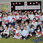Tego dnia w przedszkolu dominowały barwy biało-czerwone. Dzieci z zaangażowaniem przygotowały patriotyczne kotyliony, flagi oraz prace plastyczne inspirowane symbolami narodowymi. W trakcie uroczystej akademii recytowały wiersze i śpiewały piosenki patriotyczne, z dumą prezentując zdobytą wiedzę o swojej Ojczyźnie.
