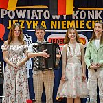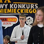 W konkursie zmierzyli się najlepsi uczniowie języka niemieckiego z całego powiatu. Emocji nie brakowało – rywalizacja była wyrównana i trzymała w napięciu aż do samego końca. Każda drużyna stanęła przed wyzwaniem serii pięciu wymagających pytań, które sprawdzały nie tylko umiejętności językowe, ale także szeroką wiedzę o kulturze, tradycjach i geografii krajów niemieckojęzycznych. Do wielkiego finału awansowało pięć najlepszych szkół, a ostateczne starcie odbyło się w formule znanej z teleturnieju „Jeden z Dziesięciu”, co dodatkowo podkręciło atmosferę.