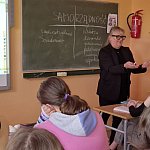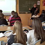 Aby przedstawić, jak łączy się teoria i prawo z praktycznym ich zastosowaniem Pani Przewodnicząca przyjęła zaproszenie nauczyciela Edukacji obywatelskiej i podjęła się zadania wyjaśnienia, nie zawsze prostych zasad podziału i działania organów samorządu terytorialnego. Uczniowie poznali zasady podziału samorządów zapisane w Konstytucji RP oraz ustawach, dowiedzieli się czym są zadania własne i zlecone dla samorządów. Radna wyjaśniła uczniom na czym polega i jak ważną odgrywa rolę zasada pomocniczości w funkcjonowaniu samorządów terytorialnych.