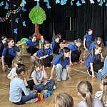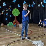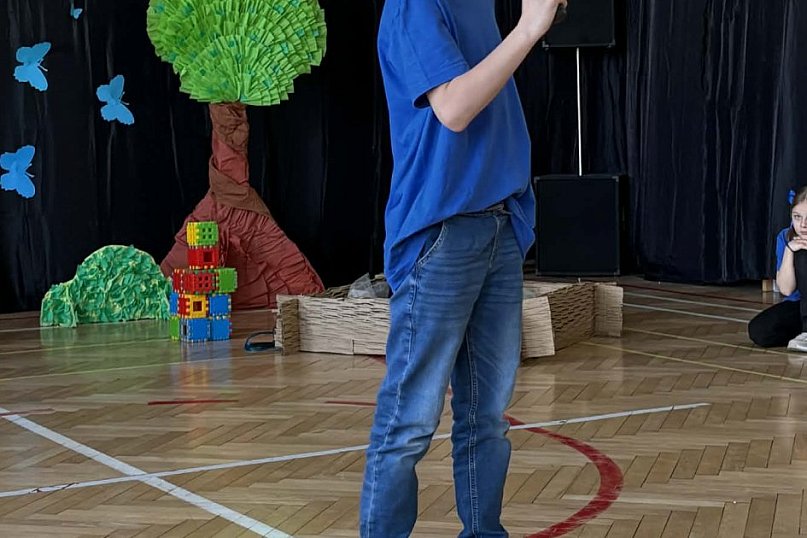 Punktem kulminacyjnym obchodów była poruszająca inscenizacja, przygotowana przez najmłodszych uczniów. Spektakl przybliżył świat chłopca w spektrum autyzmu – pokazując go nie przez pryzmat trudności, ale jako świat pełen innej, fascynującej wrażliwości. Dzięki wspaniałej grze młodych aktorów mogliśmy choć na chwilę: