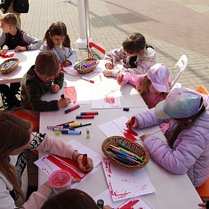 2 maja - to dzień gdy z dumą prezentujemy naszą biało-czerwoną flagę i wyrażamy szacunek do tego ważnego symbolu narodowego. To także idealny czas na upowszechnianie wiedzy o symbolach narodowych wśród najmłodszych mieszkańców. Dzisiaj na Placu Jana Pawła II dzieci miały okazję wykonać flagi RP pod okiem Moniki Rosińskiej i Małgorzaty Popiel z Centrum Kultury.