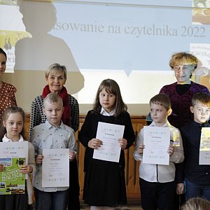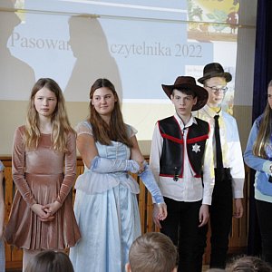 Uroczystość prowadzili uczniowie z Akademii Aktywnego Czytelnika wraz z bibliotekarkami.