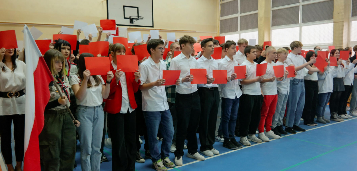 Uroczystość rozpoczął nauczyciel historii, Grzegorz Sobczak, przedstawiając rys historyczny Święta Niepodległości i przybliżając uczniom kontekst wydarzeń, które doprowadziły do odzyskania niepodległości w 1918 roku. Po krótkim wprowadzeniu wszyscy zgromadzeni odśpiewali hymn narodowy, co stanowiło symboliczne połączenie z uczniami w szkołach w całym kraju.