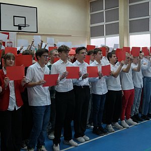 W ramach kontynuacji wspólnego śpiewania pieśni patriotycznych społeczność szkolna odśpiewała "Rotę", a następnie uczniowie i nauczyciele wspólnie śpiewali inne utwory patriotyczne, oddając hołd polskim tradycjom i wartościom narodowym.