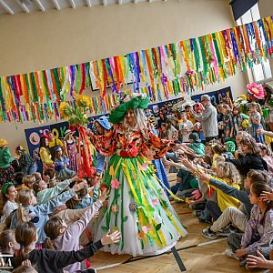 Gdy wreszcie Pani Wiosna dostojnym krokiem wkroczyła do sali, została przywitana gromkimi brawami i szerokimi uśmiechami. Uczniowie przygotowali dla niej także piękne przedstawienie o budzącej się do życia przyrodzie. Nie zabrakło również prezentacji talentów. Pani Wiosna, wzruszona tak serdecznym i radosnym przyjęciem, podziękowała uczniom i nauczycielom za ich zaangażowanie, kreatywność i ciepło.