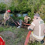 Wydarzenie miało miejsce wieczorem w miniony wtorek przy rzece Pisi Gągolinie, które w tym miejscu jest granica pomiędzy Wiskitkami i Starymi Kozłowicami. Jak relacjonują druhowie z OSP w Wiskitkach - wysoka skarpa nad rzeką Pisią stała się pułapką dla krowy, która niefortunnie zsunęła się i wpadła do koryta rzeki. Tam utknęła w trudno dostępnym grzęzawisku. Skierowani do nietypowej akcji druhowie z OSP Wiskitki i PSP Żyrardów dobrze sobie zdawali sprawę, że czas gra na niekorzyść wyziębionego i wystraszonego zwierzęcia. Ponad trzymetrowej wysokości stroma skarpa, ponad pół tony ważąca krowa oraz jej osłabienie -stanowiły bardzo poważne wyzwanie dla ekip ratowniczych. Dlatego akcja ratunkowa była długa i niezwykle skomplikowana. Wymagała dodatkowego sprzętu i wielu innowacyjnych pomysłów, jak sobie poradzić w tej sytuacji, a przede wszystkim uratować zwierzę.